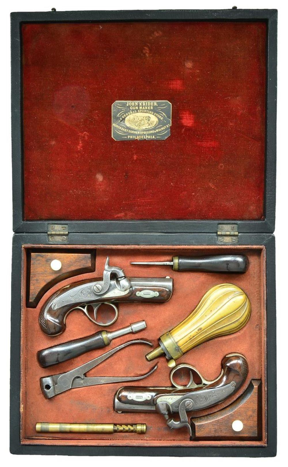 FINE CASED MATCHED PAIR OF JOHN KRIDER DERRINGER