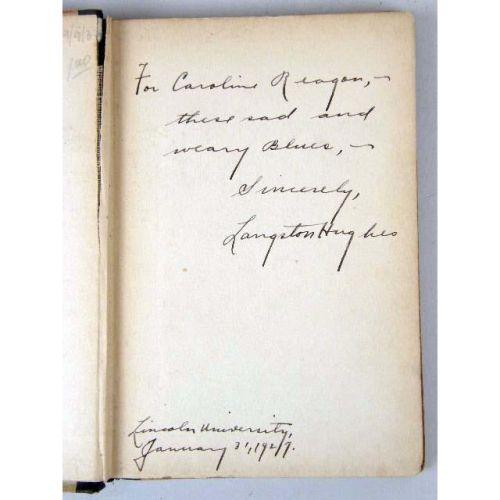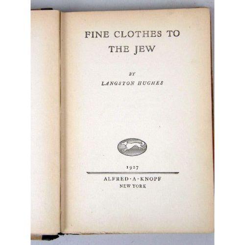 FINE CLOTHES TO THE JEWS<BR><BR>By Langston Hughes, a book of poetry, 1st edition, publisher Alfred A. Knopf, New York, 1927, inscribed "For Caroline Reagon, these sad and weary Blues, Sincerely, Langston Hughes, Lincoln University, Jan 3, 1927"