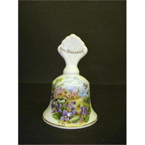 LOVELY AND COLORFUL FINE BONE ENGLISH CHINA BELL, DEPICTING CHARMING SCENE: COTTAGES WATER AND FLOWERS AND ENTITLED "NEW BRUNSWICK", IT STANDS ABOUT 4 1/4 inch high, Excellent condition - free from chips or cracks, US Buyer to pay 7.00 for shipping plus insurance.THANKS.