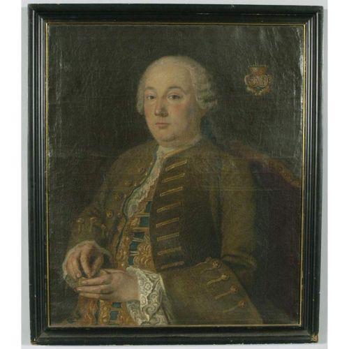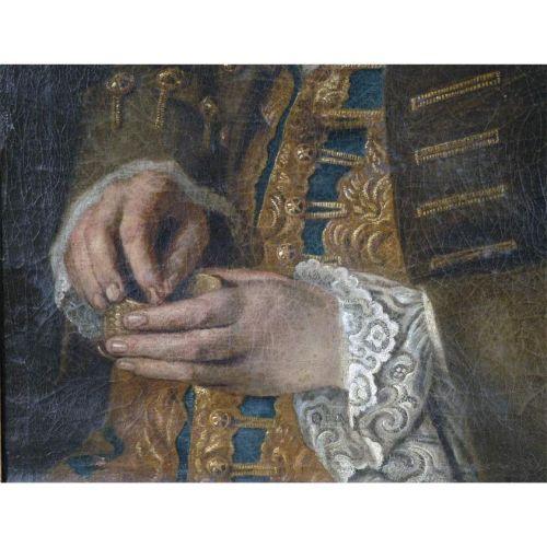 FINE ENGLISH SCHOOL PORTRAIT OF A GENTLEMAN 32"x 27" oil on canvas, 18th century CONDITION REPORT: very old wax lining, overall crazing, minor scattered inpainting.