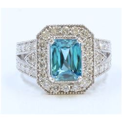 14K W/G NATURAL INDICOLITE TOURMALINE RING :6.77GRAM /INDICOLITE TOURMALINE: 2.90CT/DIAMOND RD: 0.53CT/#GVR1304