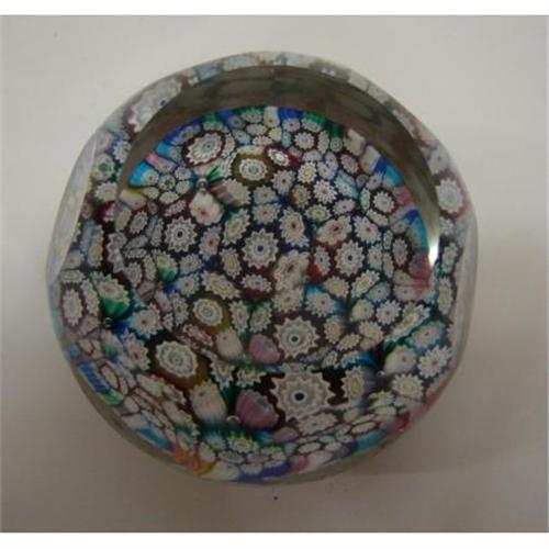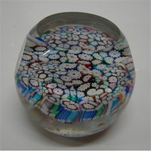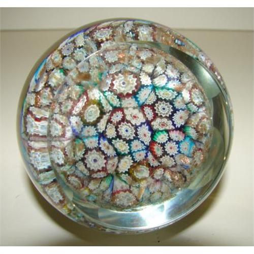 FINE MILLEFIORI GLASS PAPERWEIGHT. A good, cut and polished glass weight, with good tight millefiori and gold flecks underneath. 2.25” high, excellent condition. Unsigned, Italian or French.