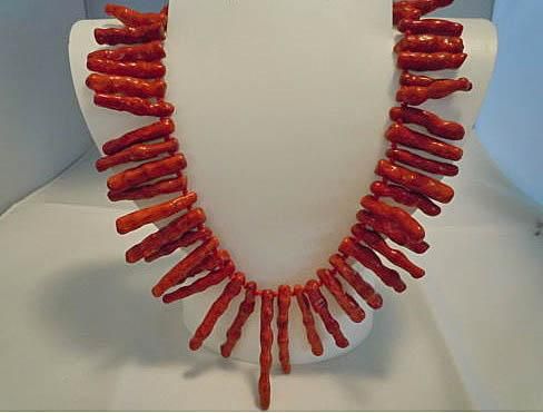 FINE RED CORAL BRANCH NECKLACE, MEASURES 18IN, STERLING SILVER CLASP
