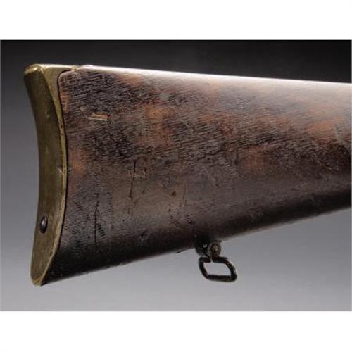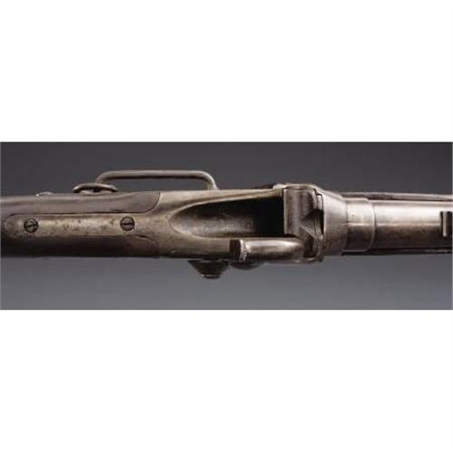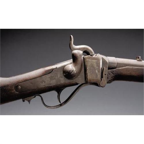 <B>FINE S. C. ROBINSON CONFEDERATE BREECH LOADING .52 CALIBER PERCUSSION SHARPS CARBINE SERIAL #11.</B></I> Believed to be the lowest serial number known. S. C. Robinson produced an estimated 1900 of these first type carbines at his factory in 1862 - 1863. The factory was purchased by the Confederate government in March 1863, after which another 3,000 second type carbines were manufactured under their auspices. This is the lowest serial number recorded, thus the earliest example known. Lock markings “S. C. Robinson/Richmond, Va./1862” with serial #11 at rear of lock and breech tang. Brass butt plate and band, which shows some minor casting flaws. Retains the original saddle bar, ring and butt swivel. V notch rear and blade front sights. A very nice completely original Confederate Sharps carbine with the added asset of being the earliest specimen known. <BR><BR><B>Condition:</B></I> All metal with smooth dark patina, just some minor scattered pitting on frame, hammer, breechblock, lock and butt swivel. Brass butt plate and band perfect, untouched/uncleaned. Deeply rifled bore very good, mechanically perfect. Wood with dark rich color showing some saddle wear on butt stock. Small sliver missing on both sides of forestock next to frame, obviously happened long ago with the edges having the same color as thee rest of the wood. <BR><BR><b>Shipping:</b> Requires 3rd Party Shipping (<a target="_blank" href="http://www.heritageauctions.com/common/shipping.php">view shipping information</a>)