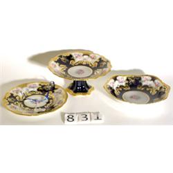 FINE SEVENTEEN PIECE COBALT, FLORAL AND GILT DECORATED LIMOGES DESSERT SET, includes twelve 8-1/2 inch dessert plates, two tall compotes, two short compotes and one 9-inch bowl