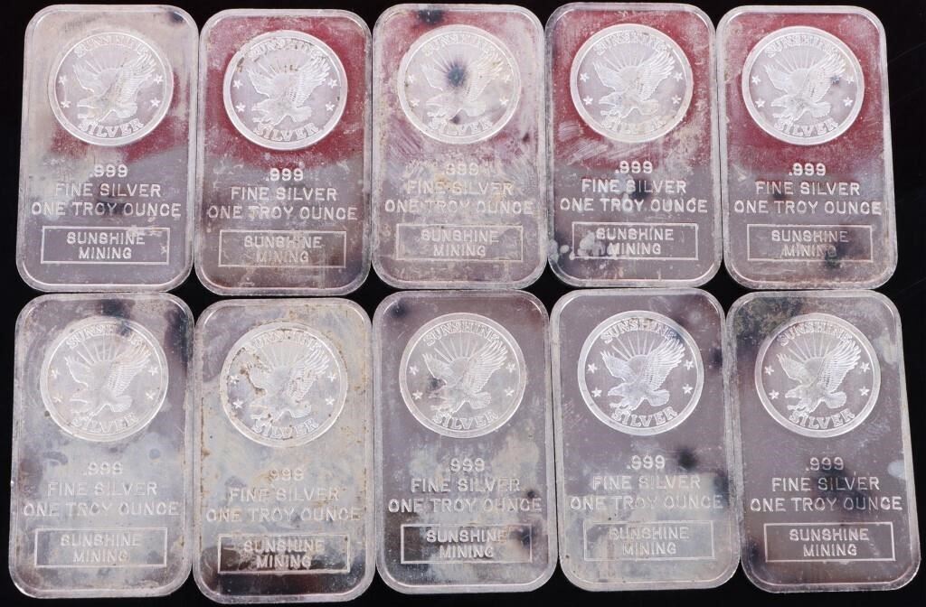 10 fine silver 1 Troy Ounce Sunshine Mining bullion.