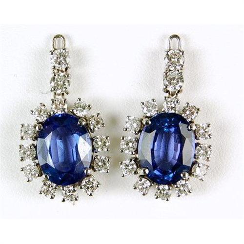 Estate Custom Made 14k White Gold Earring Dangles, each set with a FINE OVAL TANZANITE surrounded by DIAMONDS. The Total TANZANITE WEIGHT = 10.60 CARATS!! The Diamond Total Weight = 2.75 CARATS!