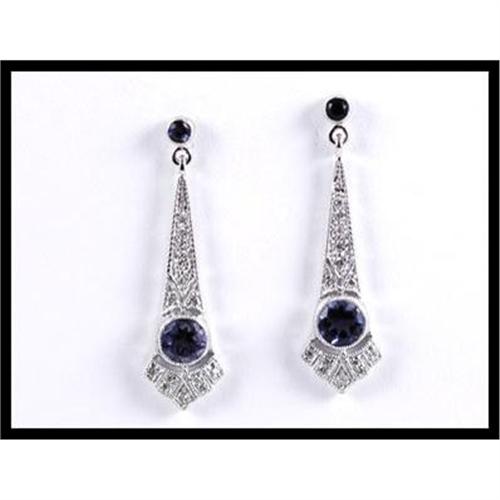 Pleasing, natural water sapphires (iolite) with 28 sparkling white diamonds are set in these beautifully hand made 14K gold earrings. Even the original price of $1,450.00 was good value, but now you can own them for just a small fraction of that amount. A GREAT OPPORTUNITY!! They are 1 ½ inches long, and weigh 5.10 grams. Serious jewelry, but a ridiculous low price.