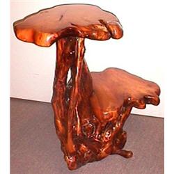 FINELY CARVED ROOTWOOD TWO-TIERED PLANT STAND, having a freeform design; 40 inch height…