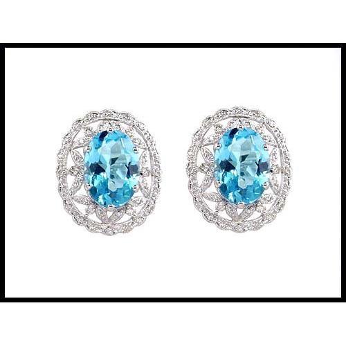 For pierced or non-pierced ears (the posts can fold down), these magnificent 18K white gold Aqua color topaz and diamond earrings are a masterpiece from a gifted goldsmith and designer. They weigh 11.50 grams. 2 gem quality natural topazes total 10.66 carats. 76 diamonds total .64 carats. They measure 20mm (3/4") wide x 24mm (1 15/16") long. They would have been sale priced for $2500.00 at our famed estate and designer events at fine stores such as Macy?s, Saks 5th Avenue, Bloomingdales, etc. Yet own them now for way less than half of that now!!