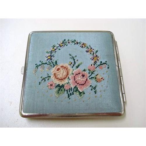 </font></strong>GORGEOUS VINTAGE LADIES COMPACT,DEPICTING BEAUTIFUL FLORAL PETIT POINT NEEDLEWORK ON A SHADE OF BLUE FABRIC - as per images - Signed *DIANA* and D.R.P., Excellent used condition, the mirror very much shows age,no chips or cracks,Compact measures about 3 1/4" in square., US Buyer to pay 7.00 for shipping plus insurance.THANKS.</font>