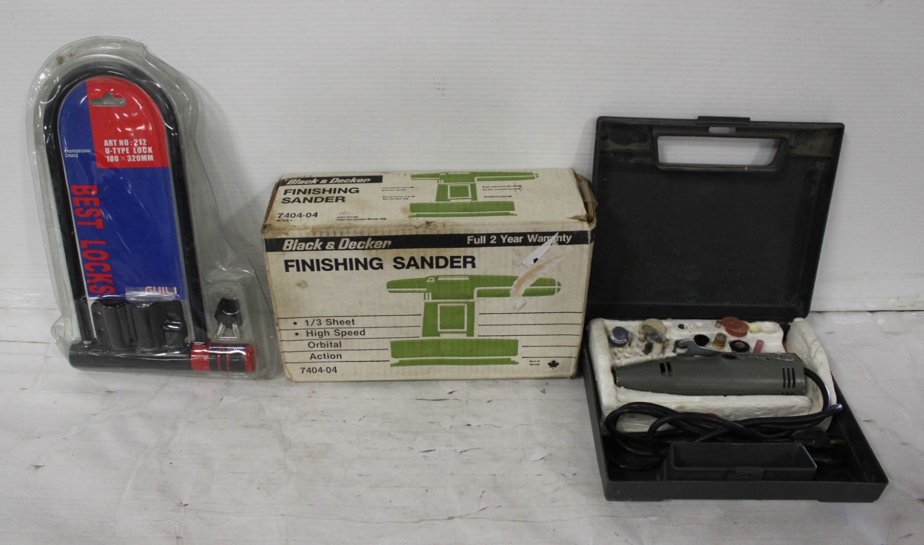 FINISHING SANDER, DREMEL TOOL AND BIKE LOCK