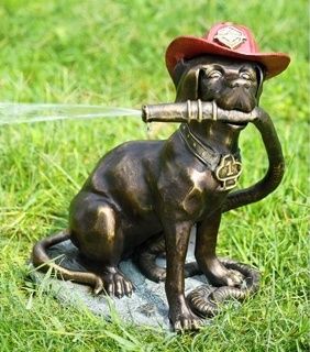 FIRE DOG GARDEN SPITTER - 16"H 13.5"W 9.5"D - ALUMINUM
