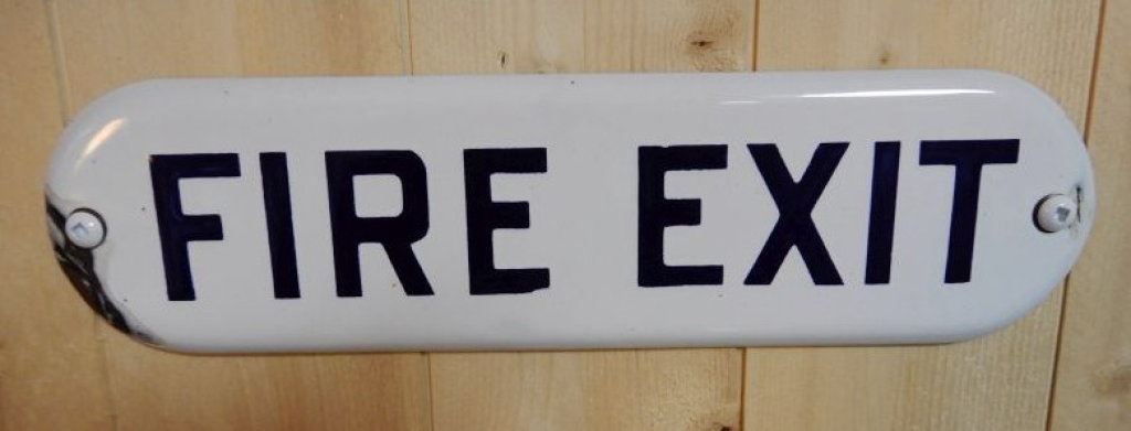 FIRE EXIT SSP SIGN 11" X 3" HANGER HOLE WEAR LOCATION: UPPER OFFICE