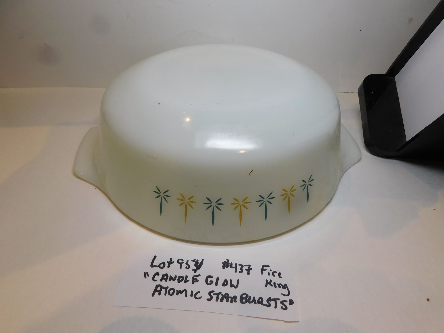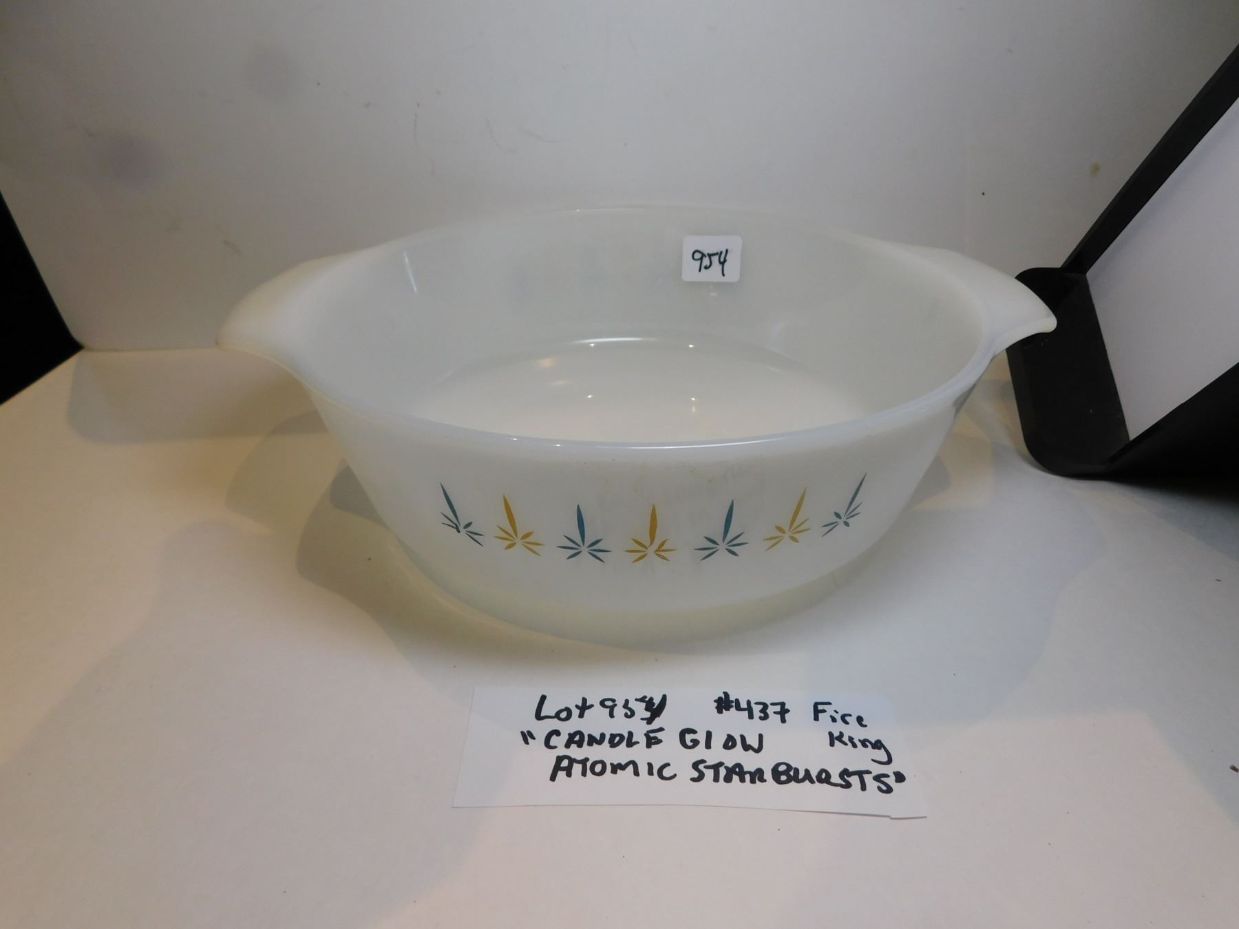 FIRE KING #437 CANDLE GLOW ATOMIC STARBURST CASSEROLE DISH
