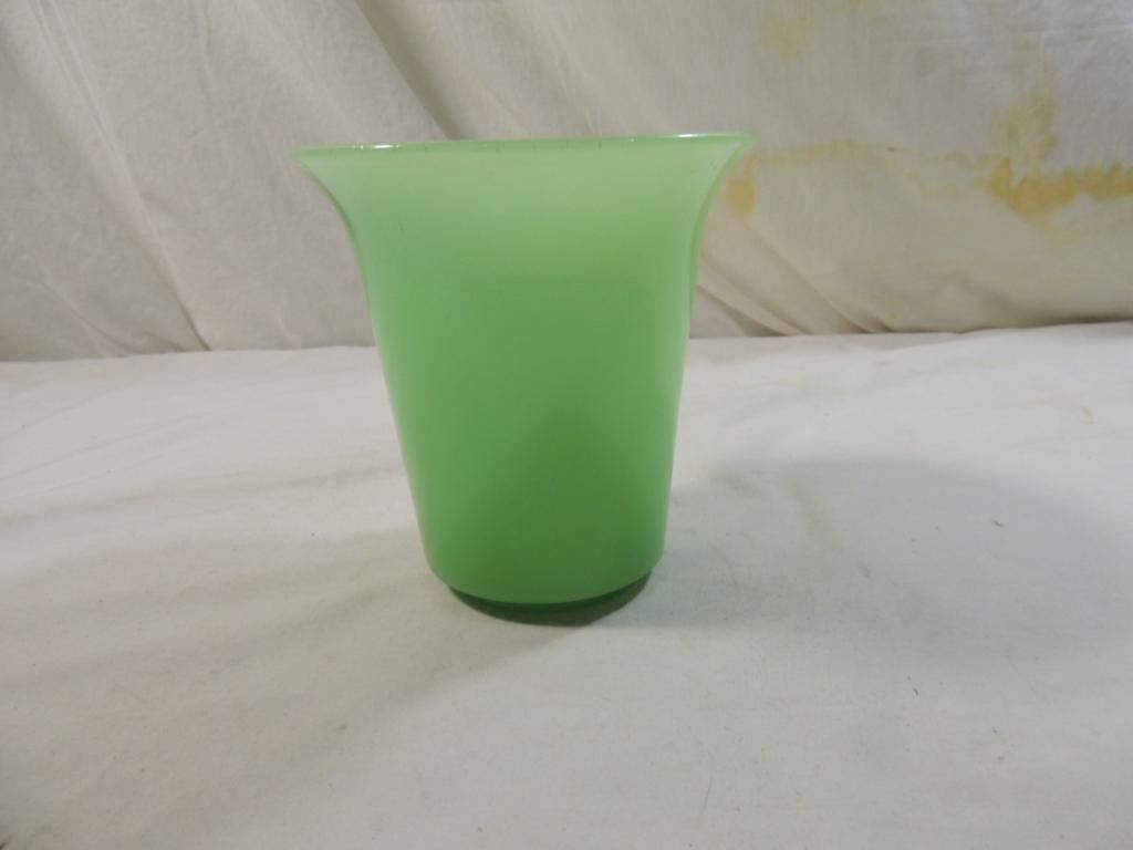 FIRE KING JADITE VASE GLASS GREEN VINTAGE VASE AS SHOWN SEE PHOTO FOR MORE DETAILS.