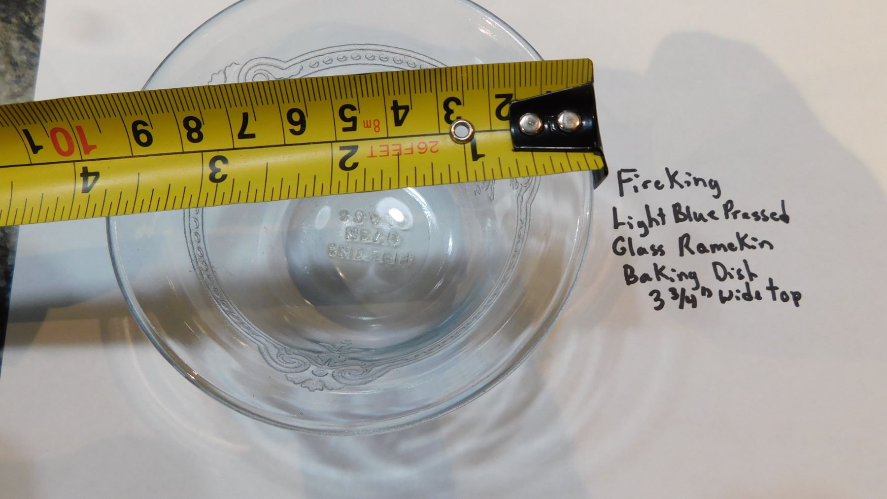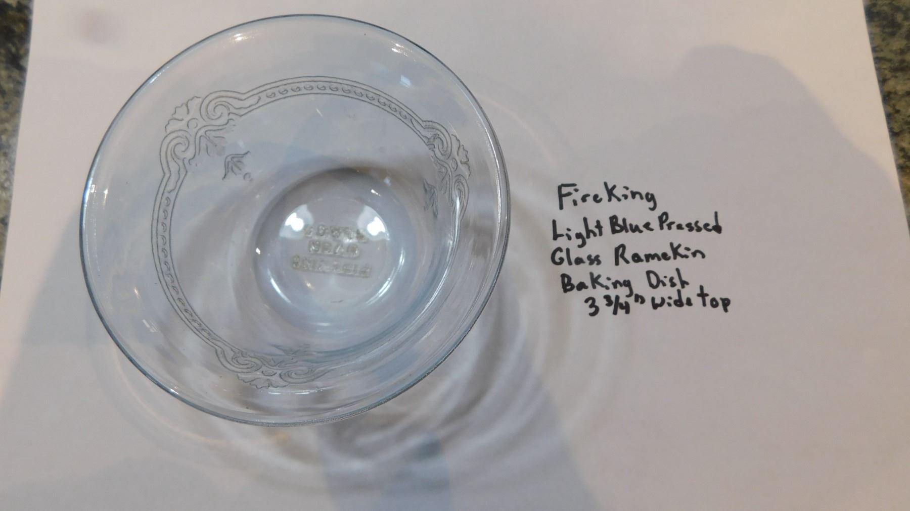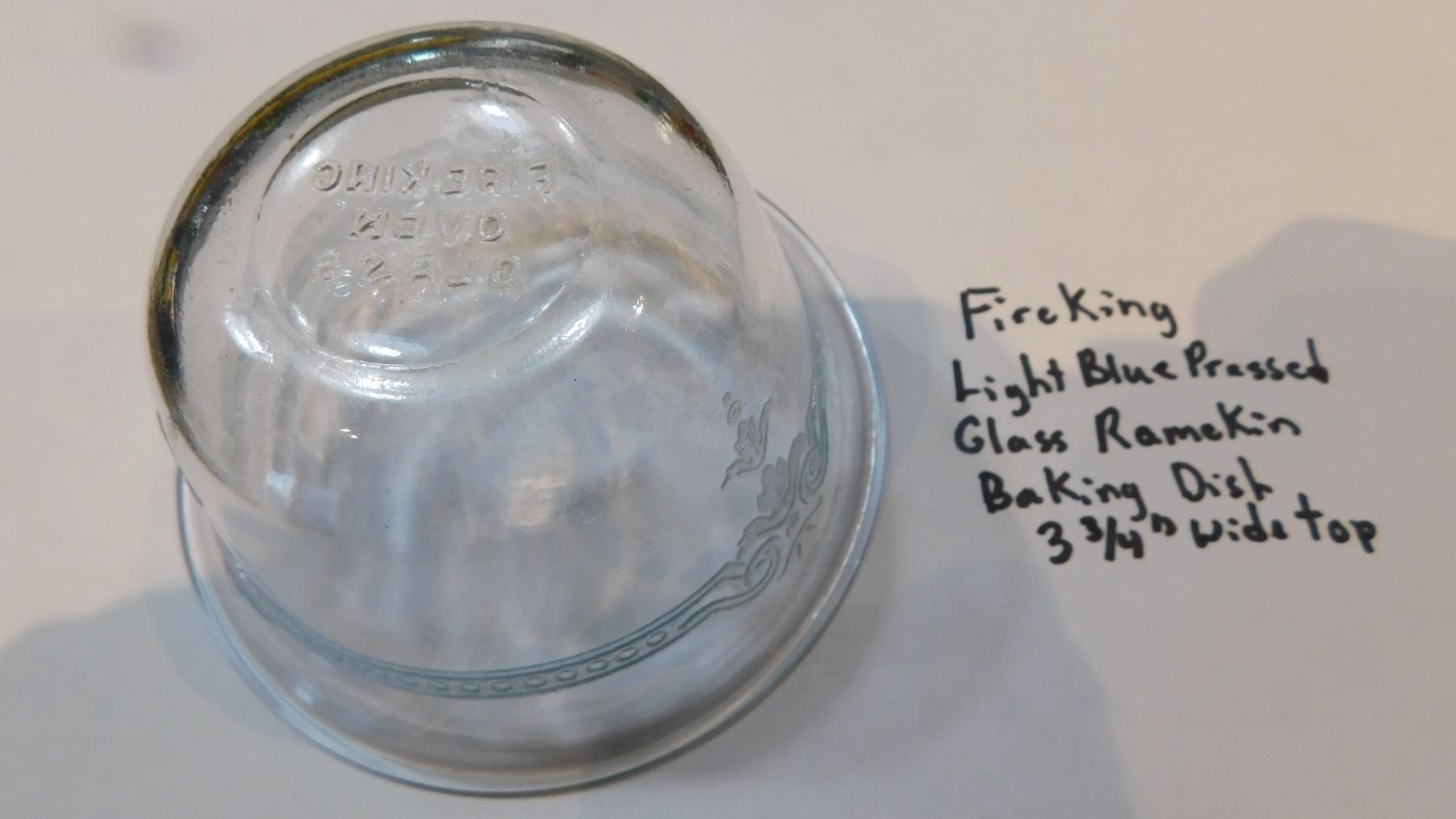 FIRE KING, LIGHT BLUE, PRESSED GLASS, RAMEKIN BAKING DISH 3 ¾ “, WIDE TOP