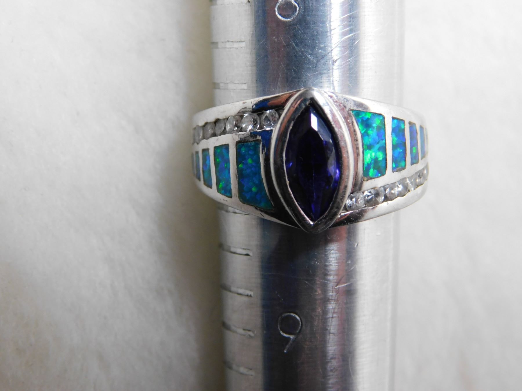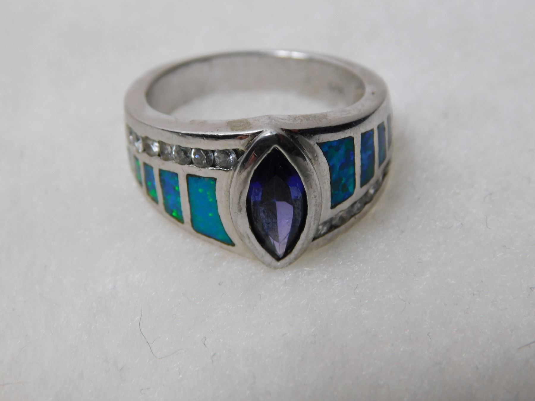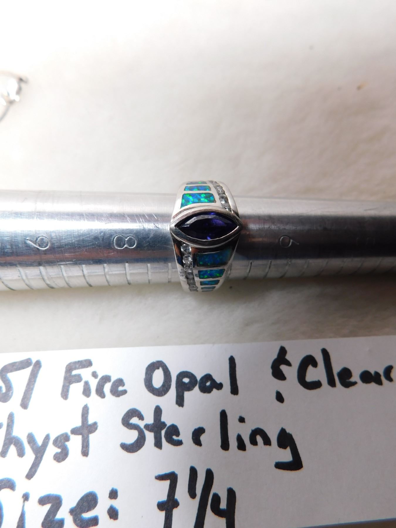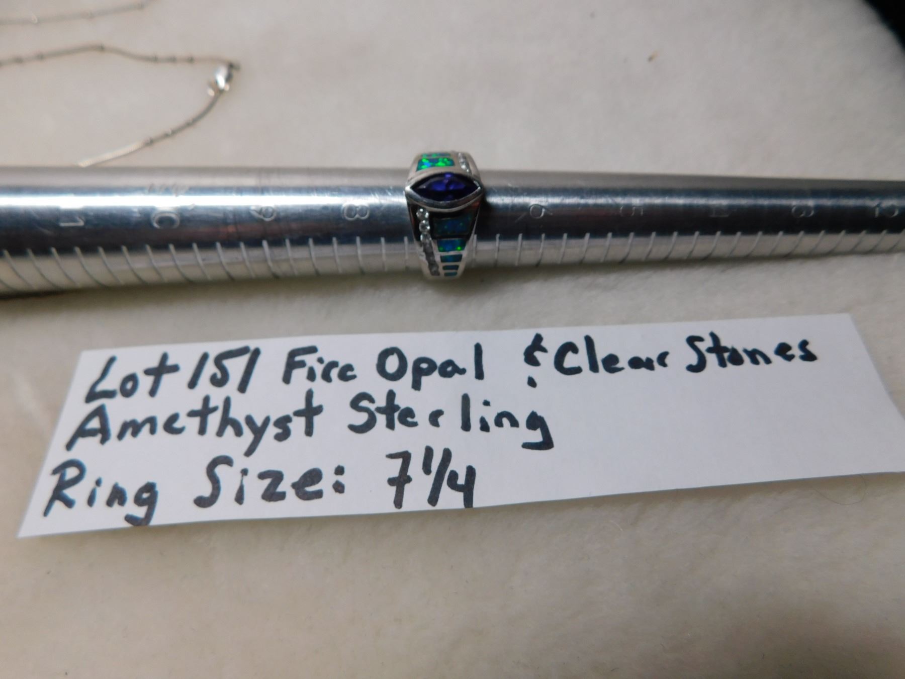FIRE OPAL, CLEAR STONE AMETHYST STERLING SILVER RING 7 1/4