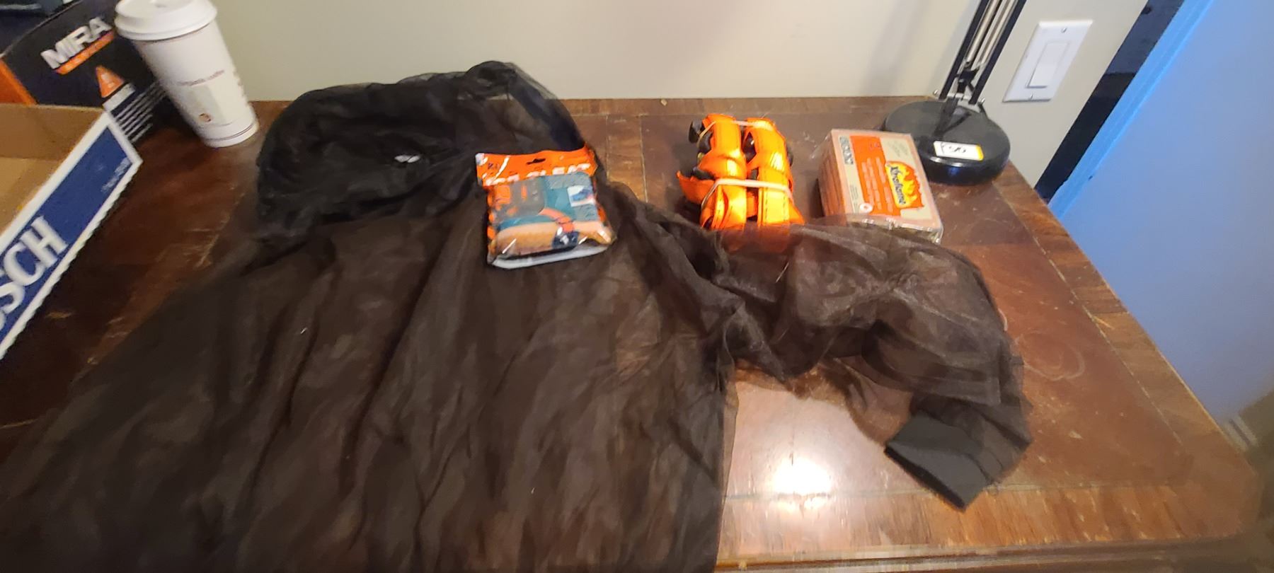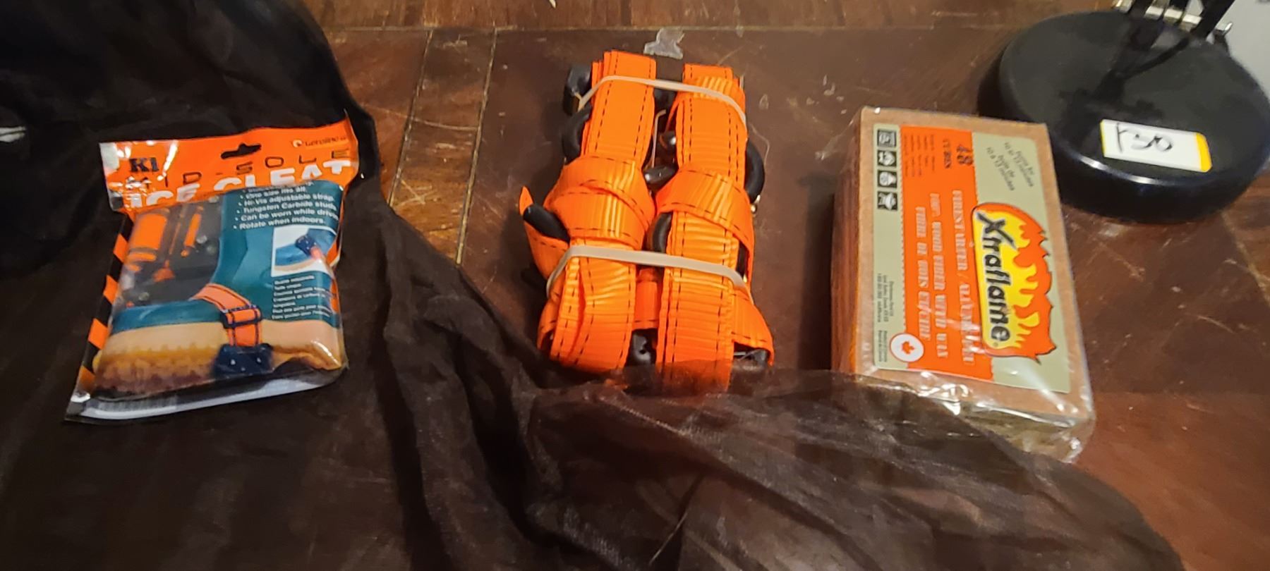 FIRE STATER, 2 RATCHET STRAPS, MOSQUITO NET AND ICE CLEATS
