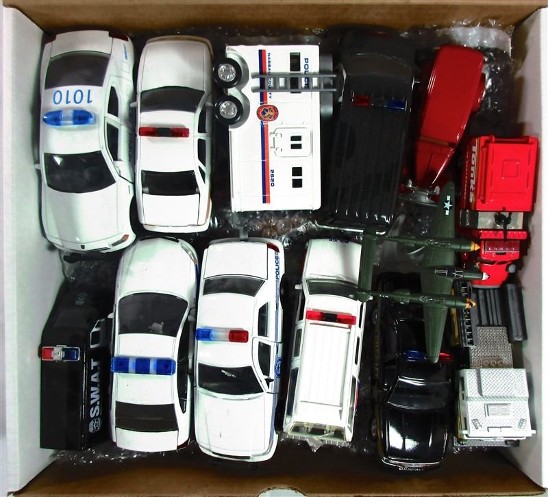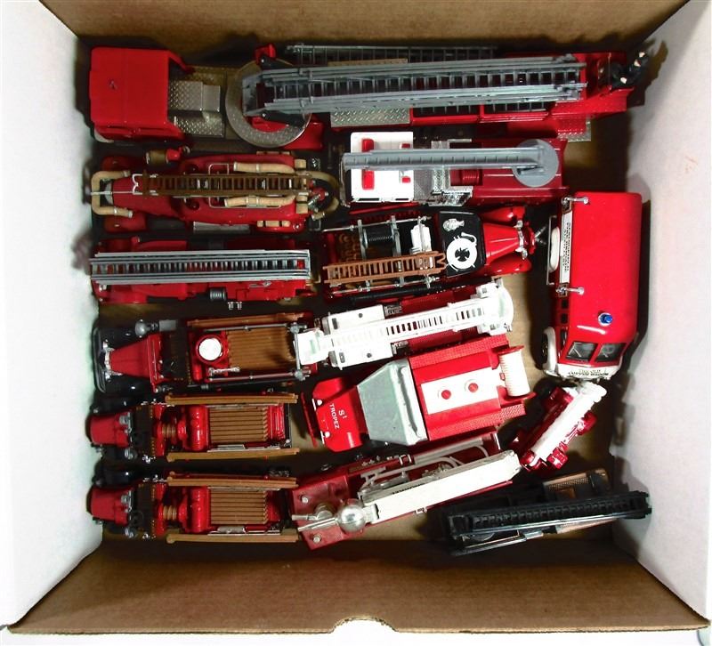 14-LADDER FIRE TRUCKS & 13 EMERGENCY VEHICLES, MOSTLY METAL DIE CAST. NICE CONDITION ESTIMATE $200 - $250.