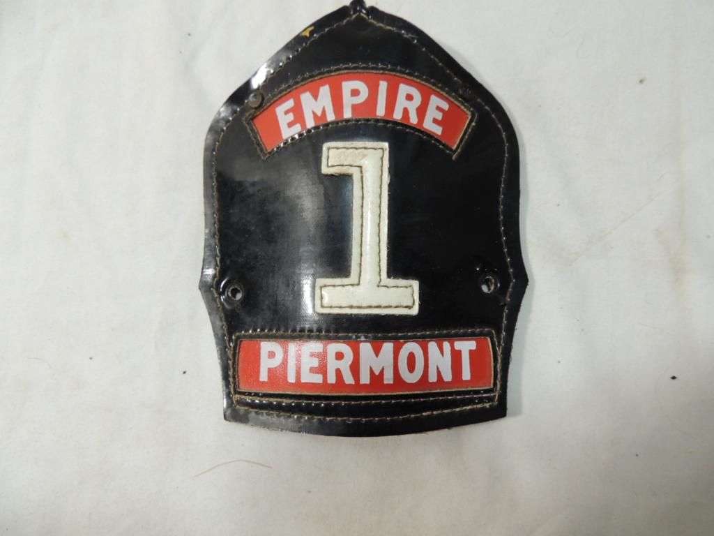 FIREMAN HELMET SHIELD. COLLECTIBLE. LEATHER UNIQUE GREAT DECOR COLLECTOR. FIRE STATION. AS SHOWN SEE PHOTO FOR MORE DETAILS.