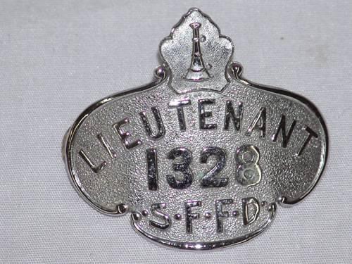 FIREMANS HAT BADGE-LT. 1328 S.F.F.D.;