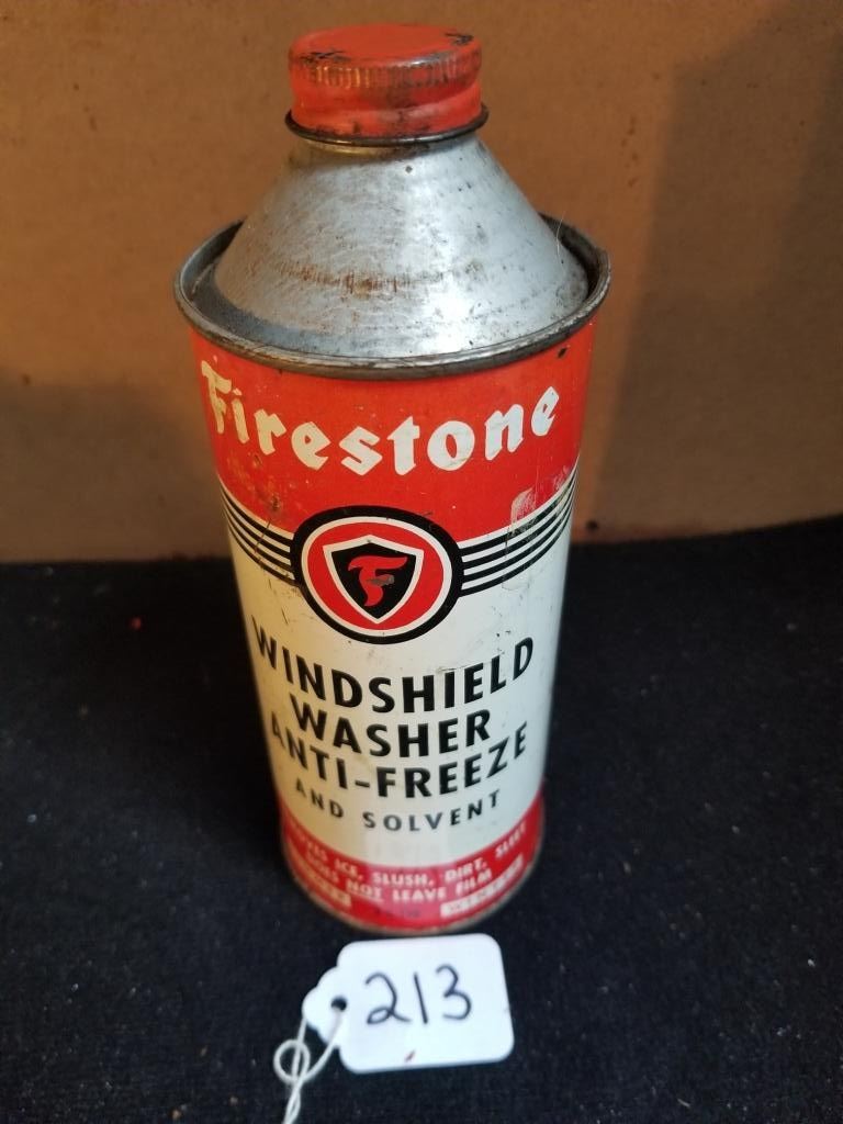 FIRESTONE WINDSHIELD WASHER ANTIFREEZE CONE TOP TIN - 16 OZ.