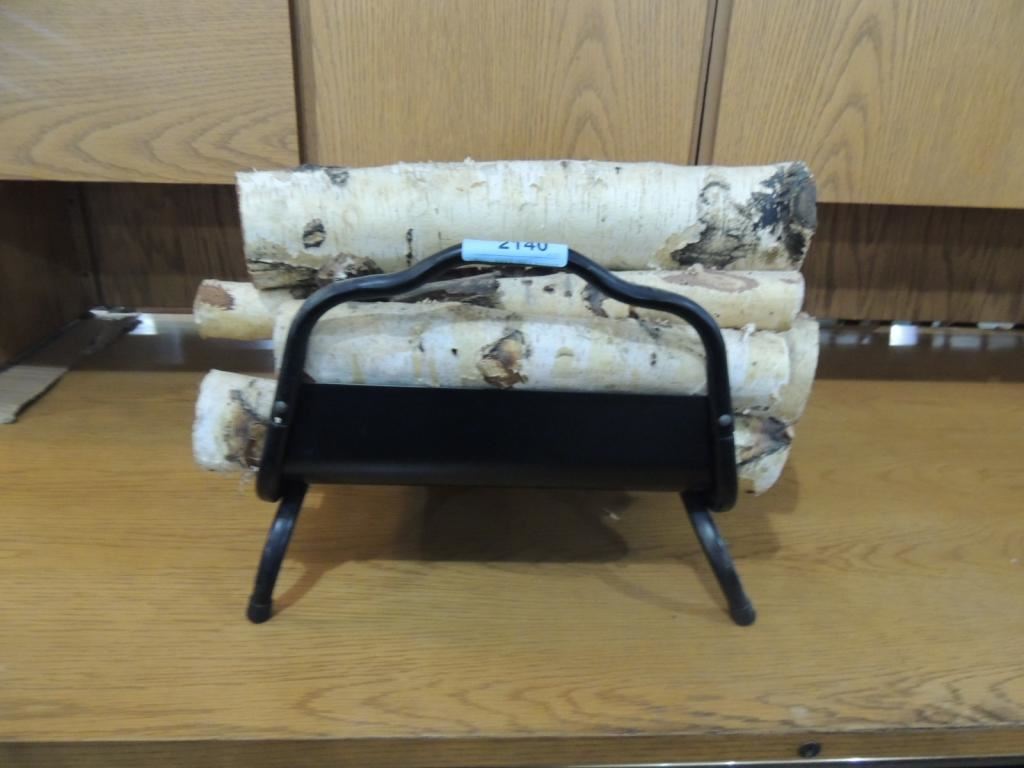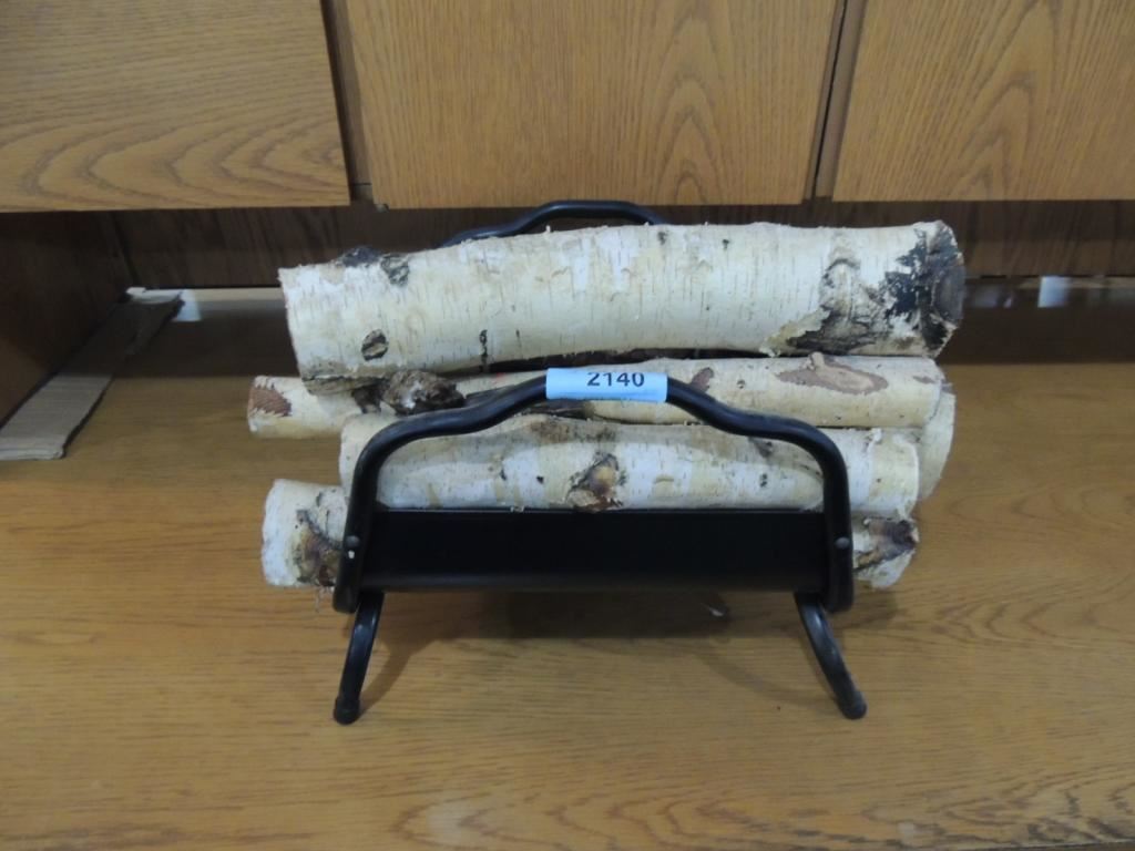 FIREWOOD HOLDER, METAL HOLDER, DECORATIVE HOLDER, FIRE WOOD, BIRCH WOOD DECORATIVE AS SHOWN SEE PHOTO FOR MORE DETAILS.