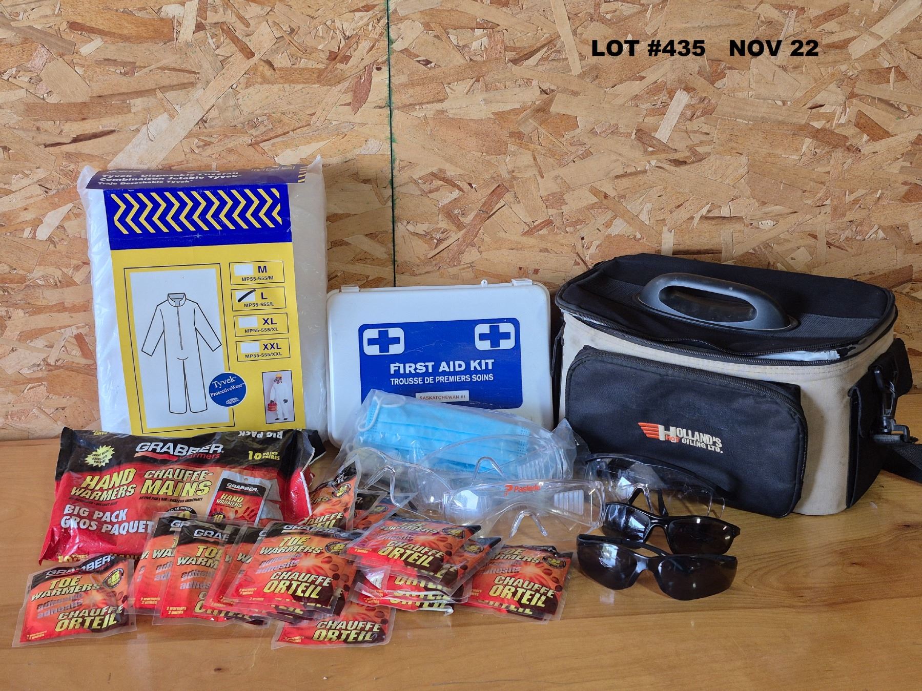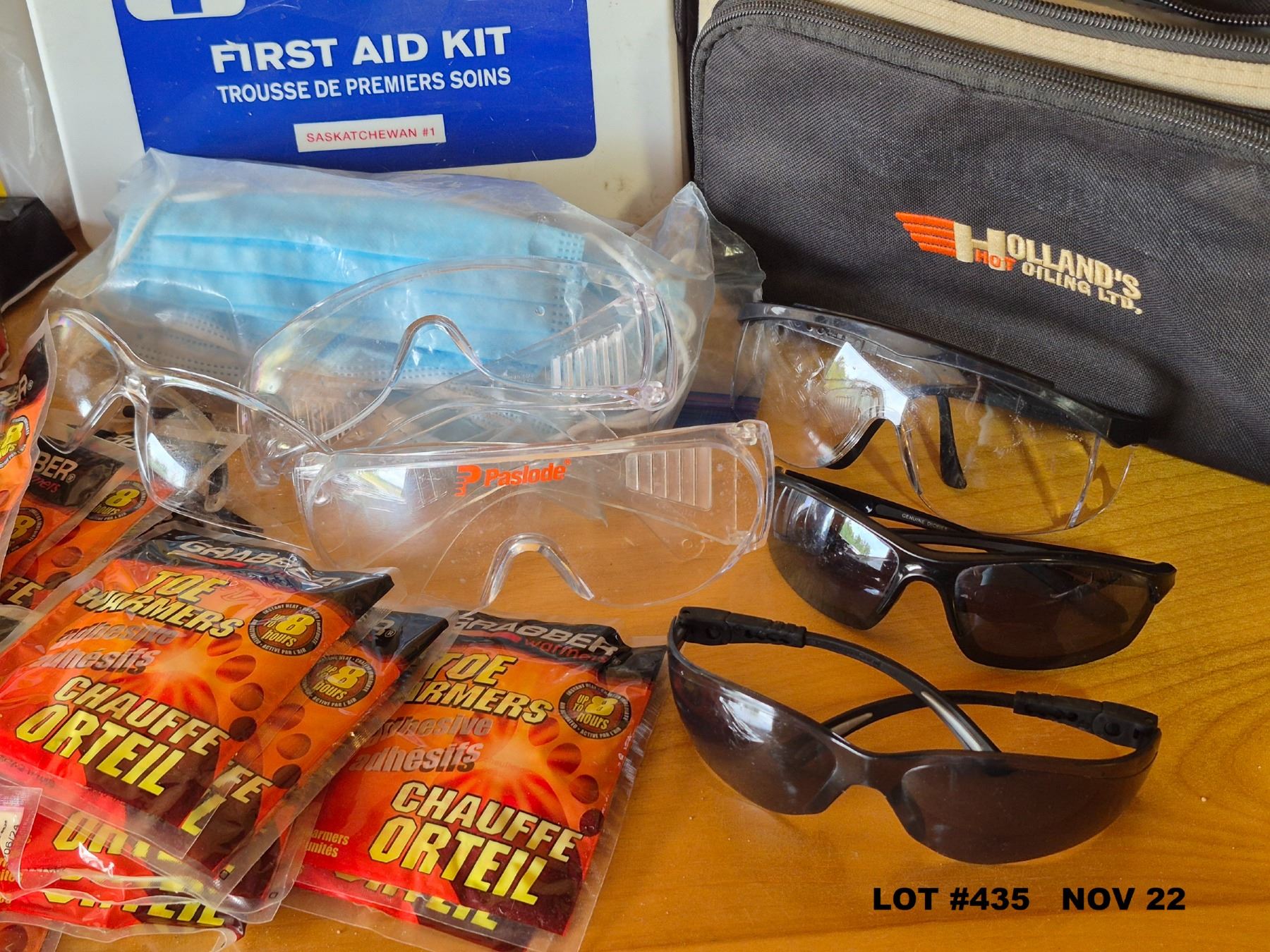 FIRST AID KIT/SAFETY LOT. Glasses. Toe & Hand Warmers.