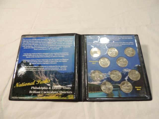 COMPLETE NATIONAL PARK QUARTER SET, PROOF COINS. 10 COIN SET IN PRESENTATION CASE, AS SHOWN.