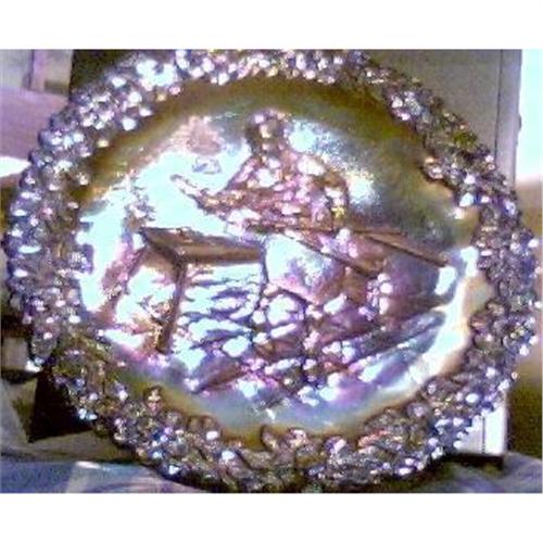 I COULD NOT GET GOOD PICTURES OF THESE PURPLE FENTON COLLECTIVE SERIES PLATES BECAUSE THEY SHIMMER SO MUCH AND THE BACK SIDE WHERE THE BEAUTIFUL HISTORY AND NUMBERS ARE LOCATED DID NOT COME OUT AT ALL SO I'LL PUT THEM HERE IN THIS DESCRIPTION. IN THE CENTER OF THE BACK OF THE PLATE IS THE TRADITIONAL FENTON NAME IN ITS OVAL LOGO. THE FOLLOWING DESCRIPTION IS IN RAISED LETTERS ON THE BACK: THE FENTON ART GLASS COMPANY COMMEMORATES WITH THIS HANDMADE PLATE THE EARLIEST GLASS CRAFTSMAN OF NEW AMERICA...JAMESTOWN-1608. THEN COMES THE LOGO AND INSCRIBED AFTER THE LOGO IS THIS: NO. 1 IN THE ANNUAL SERIES OF COLLECTOR'S PLATES BY FENTON 1970. THIS HAS SURVIVED 37-YEARS AND HAS NO BLEMISHES, CRACKS, OR BREAKS, IT IS IN MINT CONDITION. IF YOU WOULD LIKE OTHER PHOTO'S PLEASE DON'T HESITATE TO ASK, I'LL BE GLAD TO SEND YOU AS MANY AS YOU WOULD LIKE AT DIFFERENT ANGLES. THANKS FOR LOOKING AND HOPE SOMEONE WOULD LOVE THIS PLATE. IT WAS THE FIRST OF THIS SERIES AND PROBABLY THE MOST SOUGHT AFTER. I JUST HOPE SOMEONE WILL GIVE IT ANOTHER HOME WHERE IT WILL SURVIVE ANOTHER 37-YEARS. THANKS FOR LOOKING.