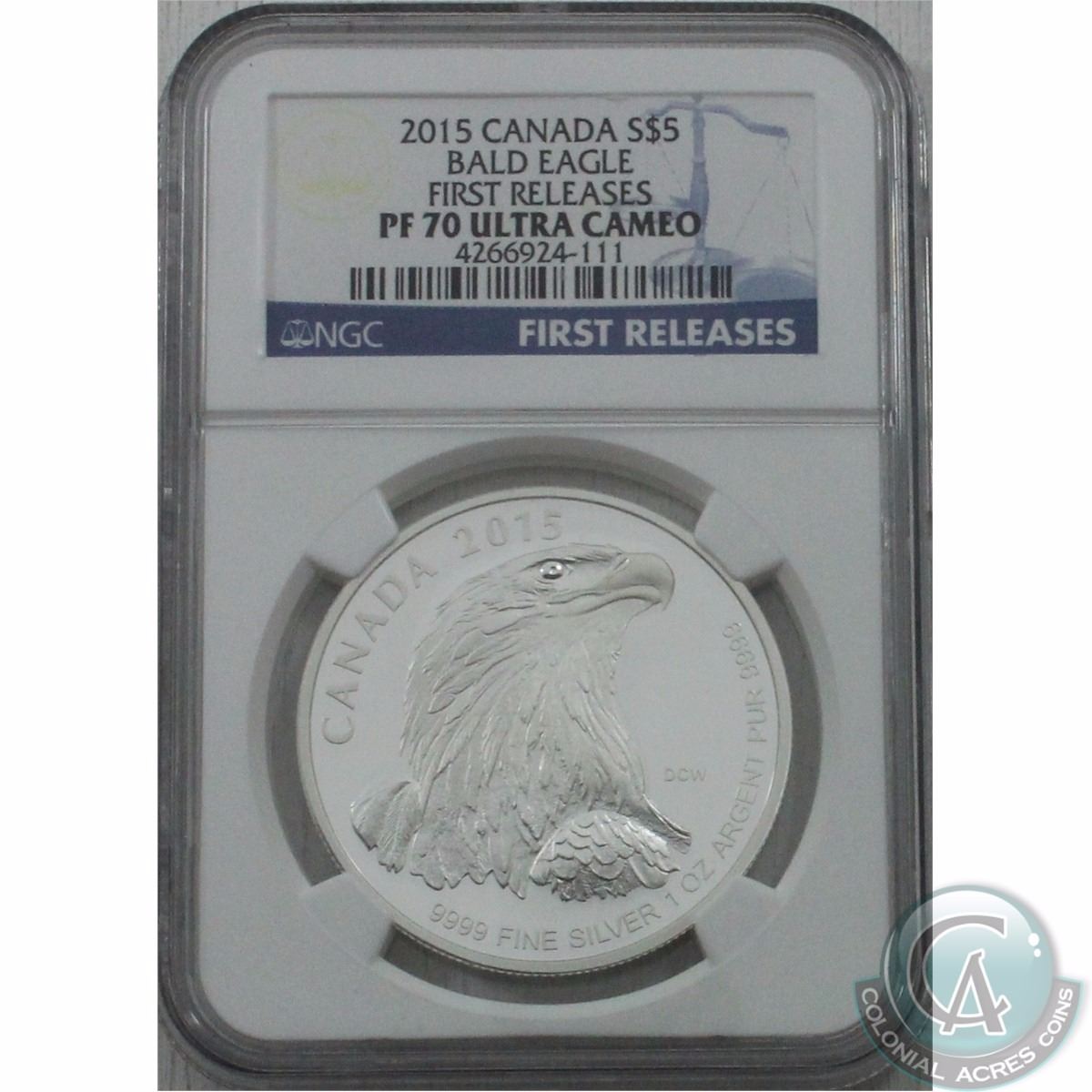 FIRST RELEASES!! 2015 Canada $5 Bald Eagle 1 oz. Fine Silver NGC Certified PF70; Ultra Cameo (Tax Exempt)
