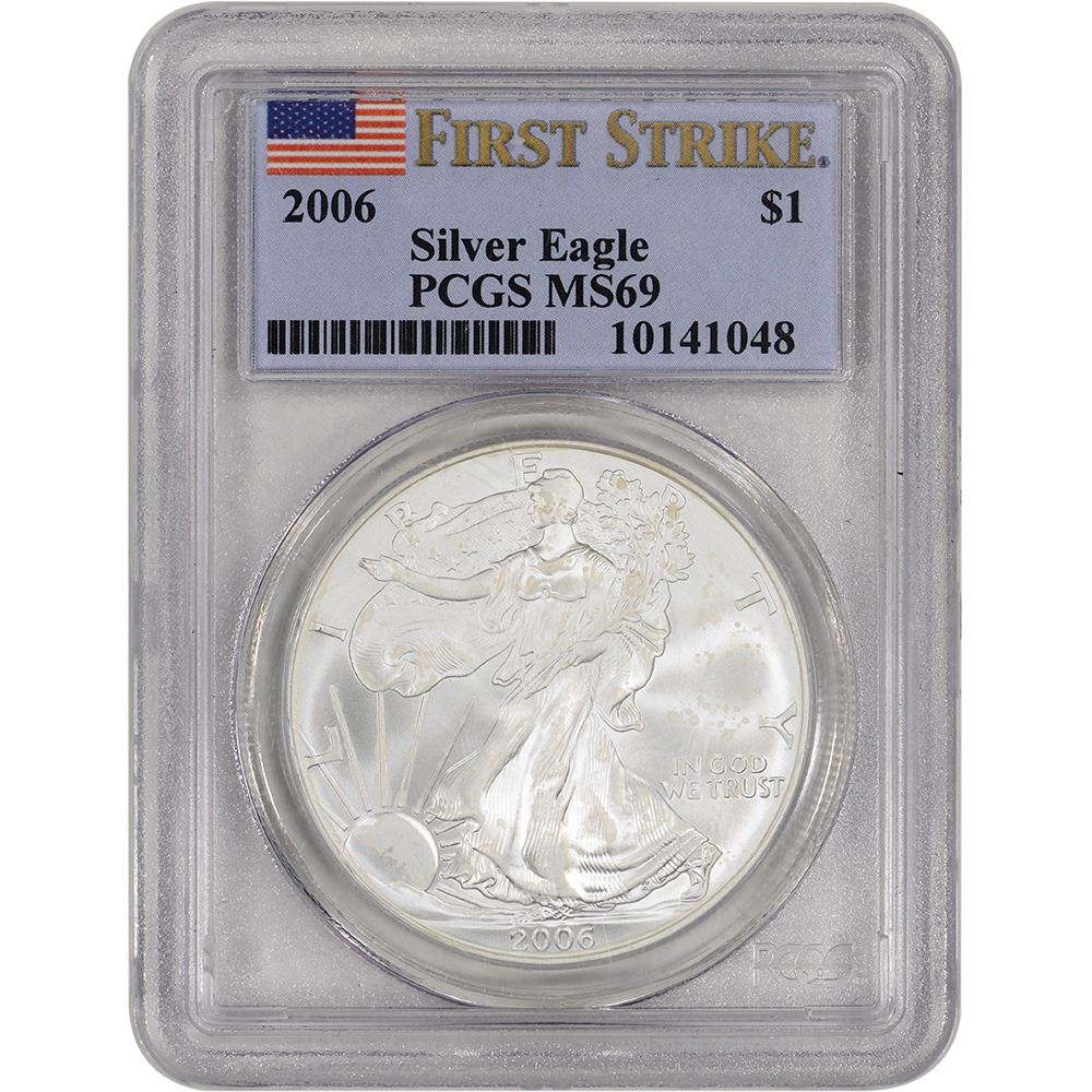 FIRST STRIKES: TWO (2) 2006 Silver Eagles PCGS Graded MS69, One Ounce Fine Silver Each, Both One $