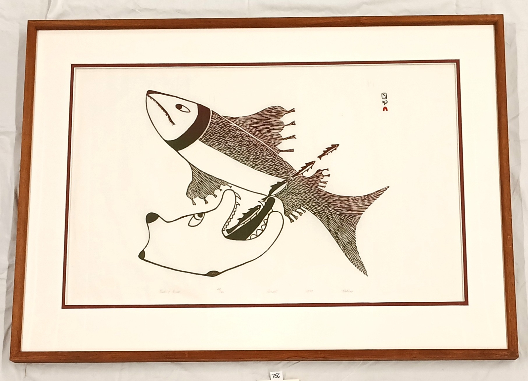 NOTE: 29.5 X 42IN W/ FRAME - ARTIST ORIGINAL PRINT 47/50 - CIRCA 1971 - MADE IN CAPE DORSET