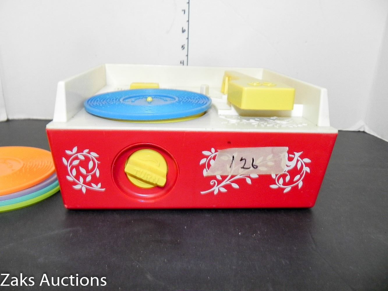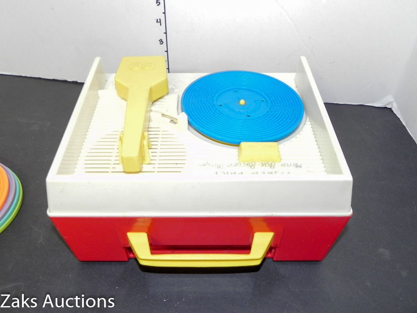 FISHER PRICE RECORD PLAYER WITH RECORDS - TESTED AND WORKING