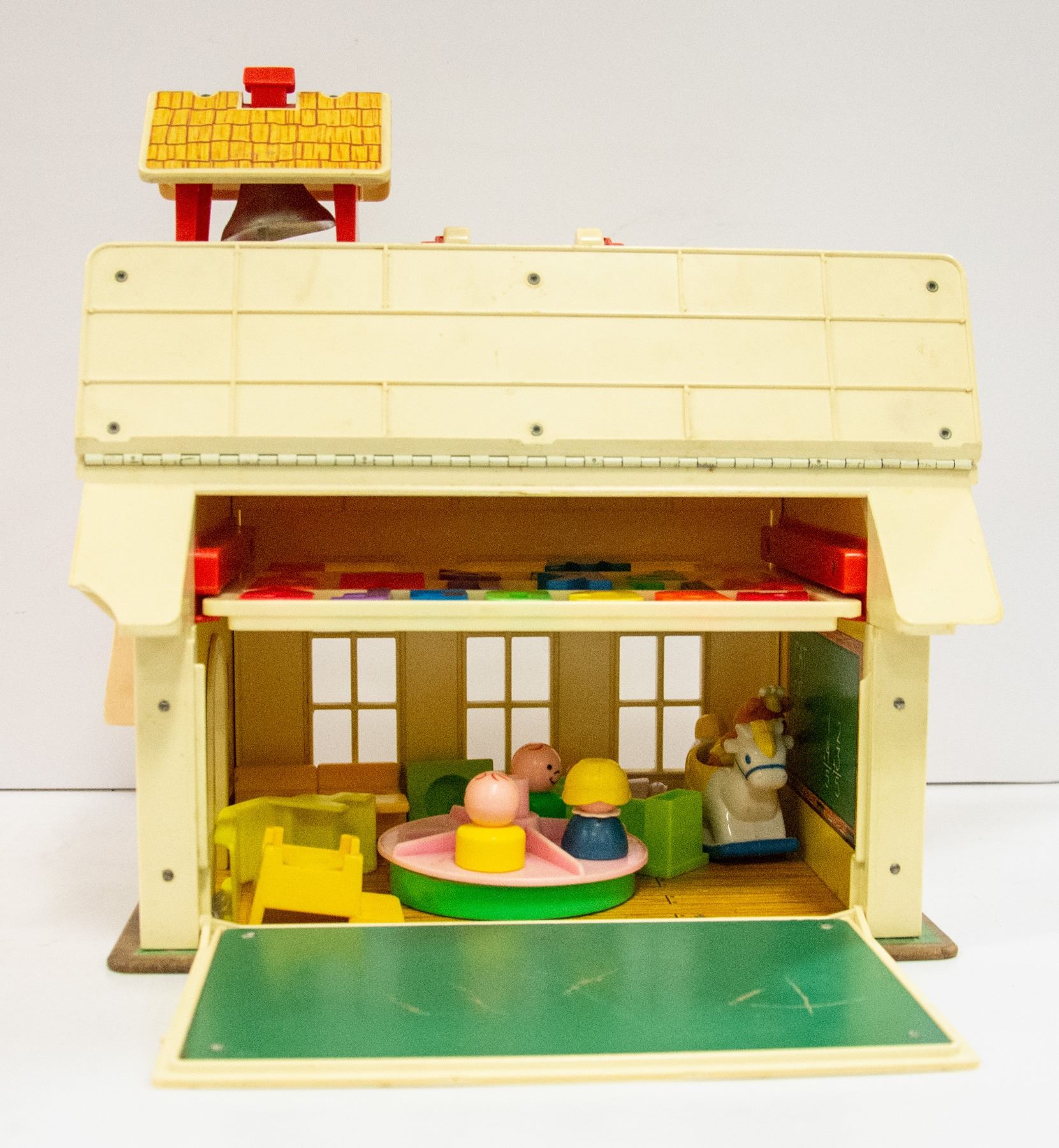 FISHER PRICE SCHOOL HOUSE W/ VARIOUS ACCESSORIES