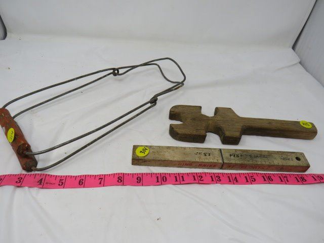 FISHERMAN'S FLOATING KNIFE, CANNING JAR TOOL & WOODEN WRENCH