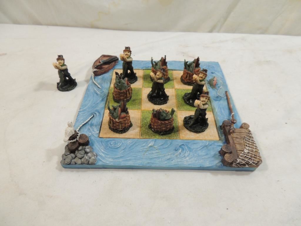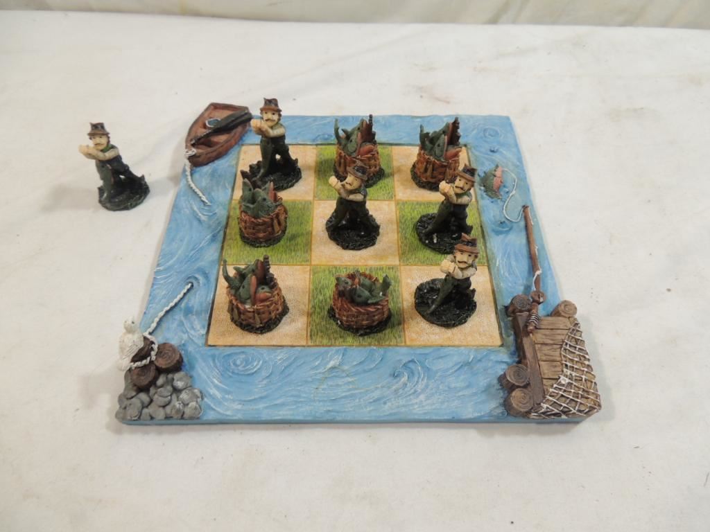 FISHERMEN DECORATIVE TIC TAC TOE GAME, DECORATIVE FIGURINE GAME, AS SHOWN SEE PHOTO FOR MORE DETAILS.