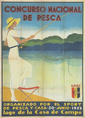 CONCURSO NACIONAL DE PESCA. 1935. 112x80cm. (44x31,5in.). Litografía. C. Recompuesto de varios trozos. Entelado.