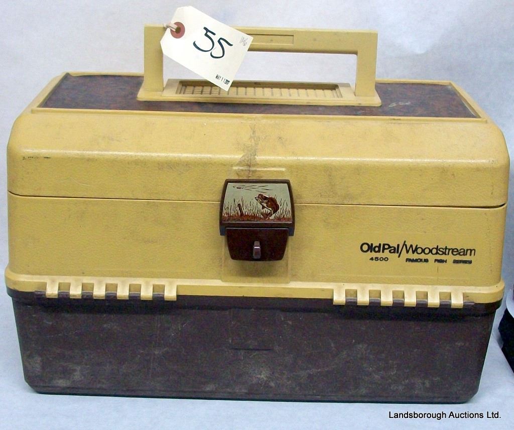OLD PAL 4500 TACKLE BOX WITH TACKLE, ABU GARCIA BAIT CASTER, ZEBCO CARDINAL 554 SPINNER, TWO JOHNSON SPIN CAST, ONE DAIWA, ONE SHAKESPEARE.