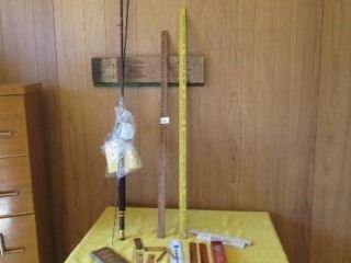 FISHING ROD & 2 YARD STICKS & SLIDE RULE WITH INSTRUCTIONS