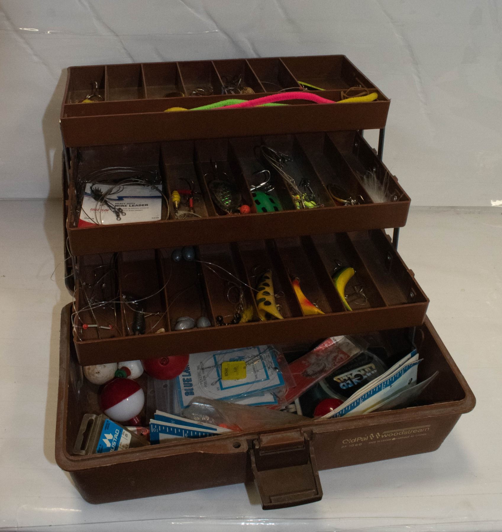 FISHING TACKLE BOX, FULL OF TACKLE W/ LARGE
