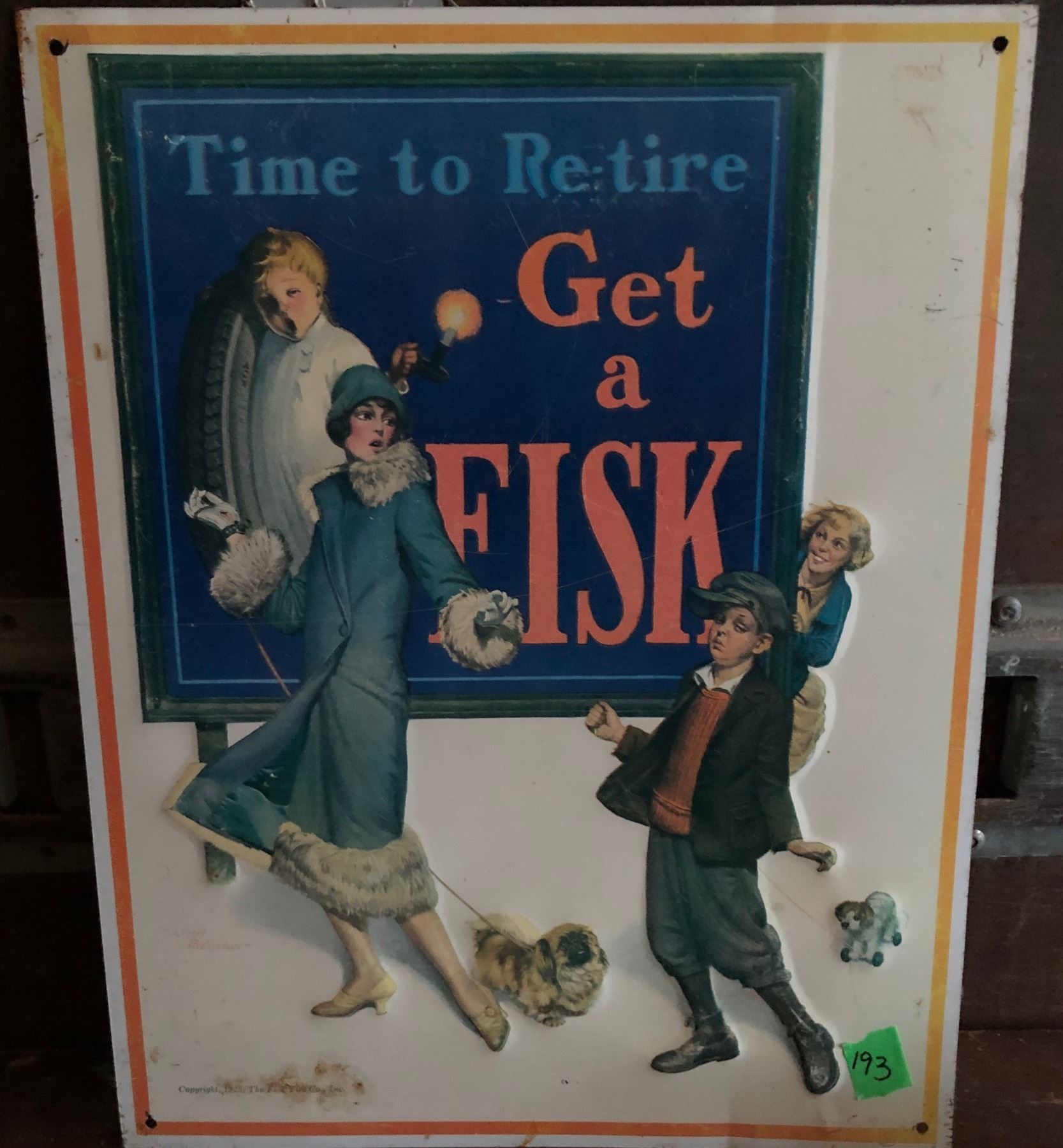 FISK SINGLE SIDED TIN SIGN - 13.5" X 18"