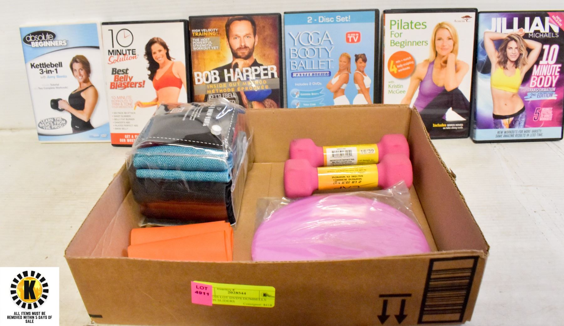 FITNESS LOT DVD'S DUMBELLS BANDS SLIDERS