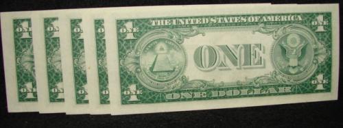 FIVE 1935 $1 U.S. SILVER CERTIFICATES. Series 1935E. Consecutive numbers. CU.