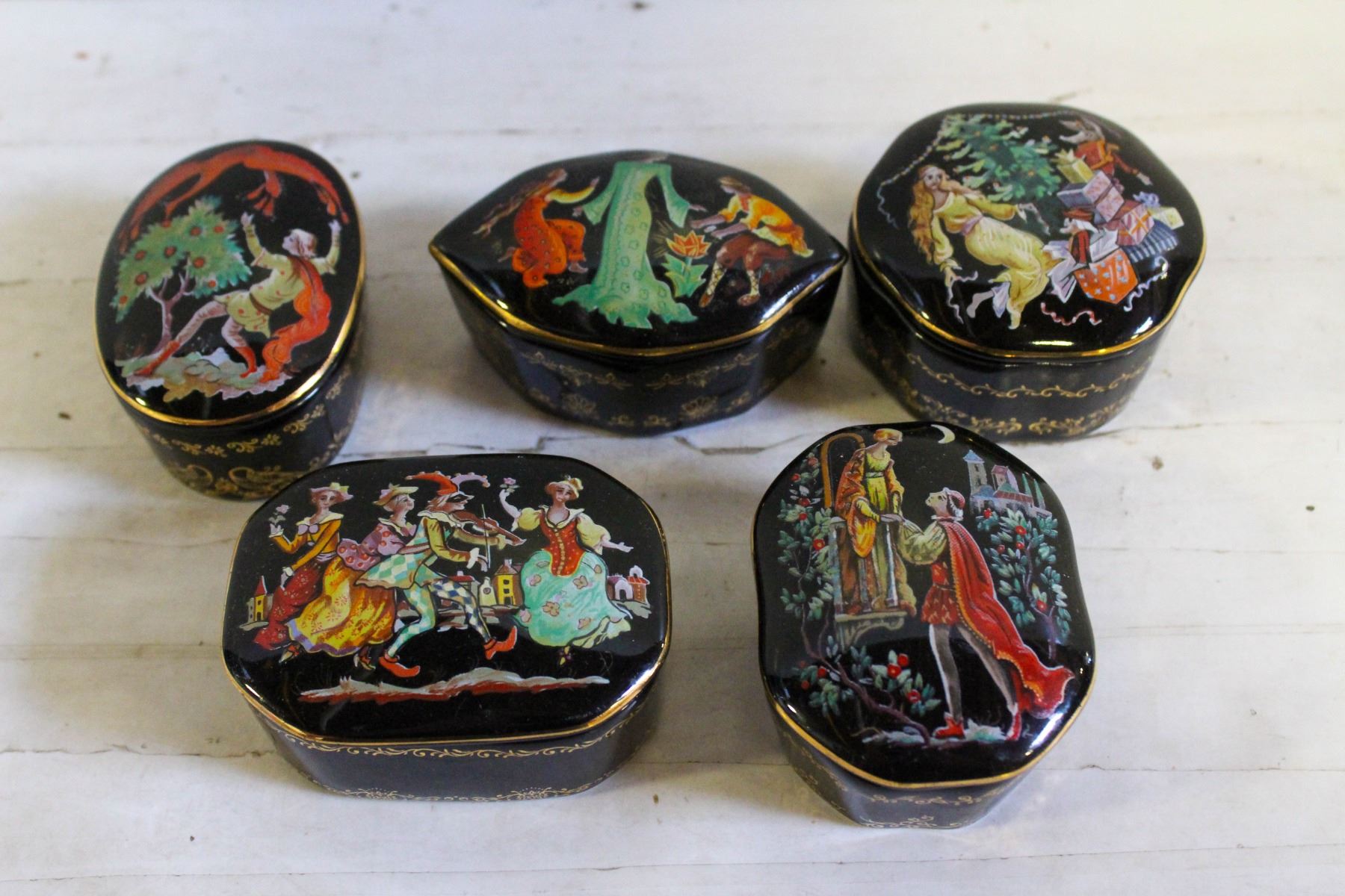 FIVE 1980S PORCELAIN MUSIC BOXES- WORKING