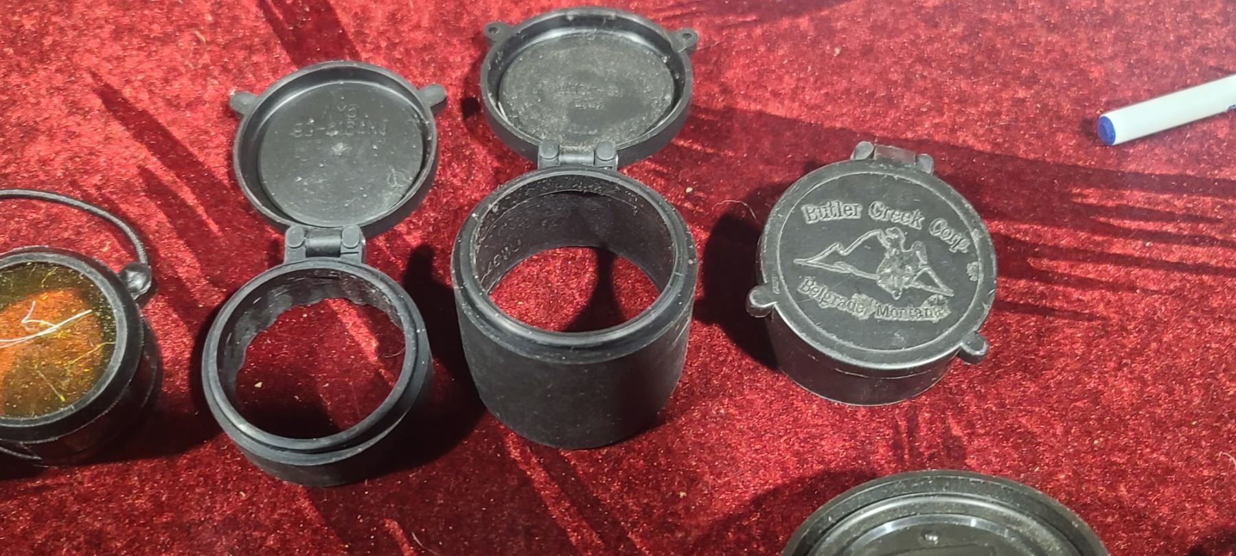 FIVE 40MM SCOPE SHADES AND ASSOTERD SCOPE CAPS