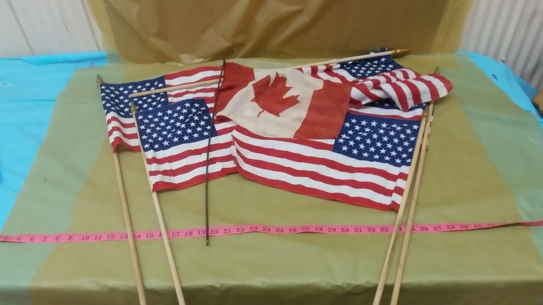 FIVE AMERICAN FLAGS AND ONE CANADIAN FLAG
