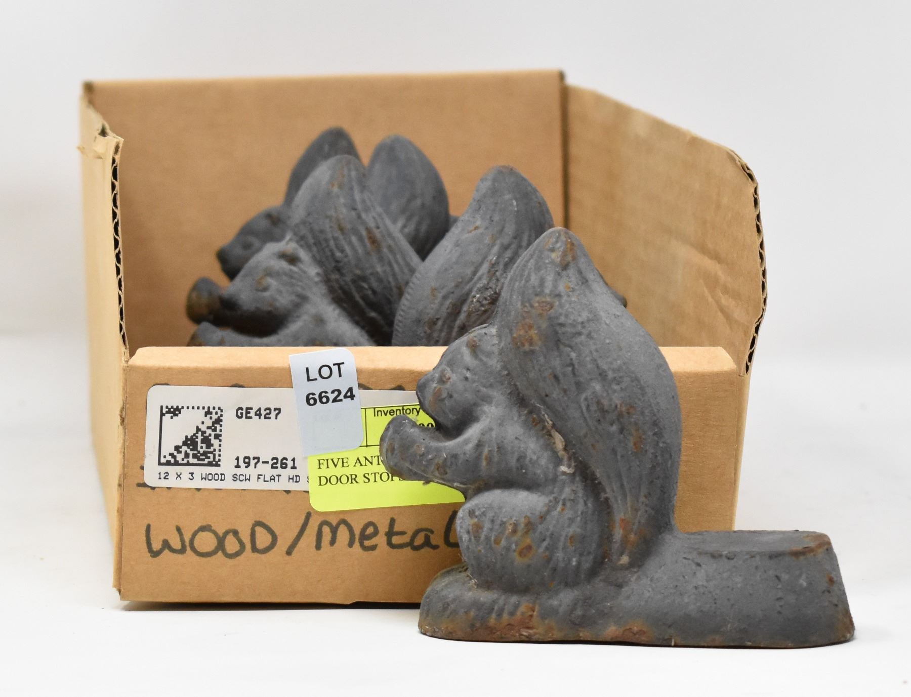 FIVE ANTIQUE CAST SQUIRREL DOOR STOPS