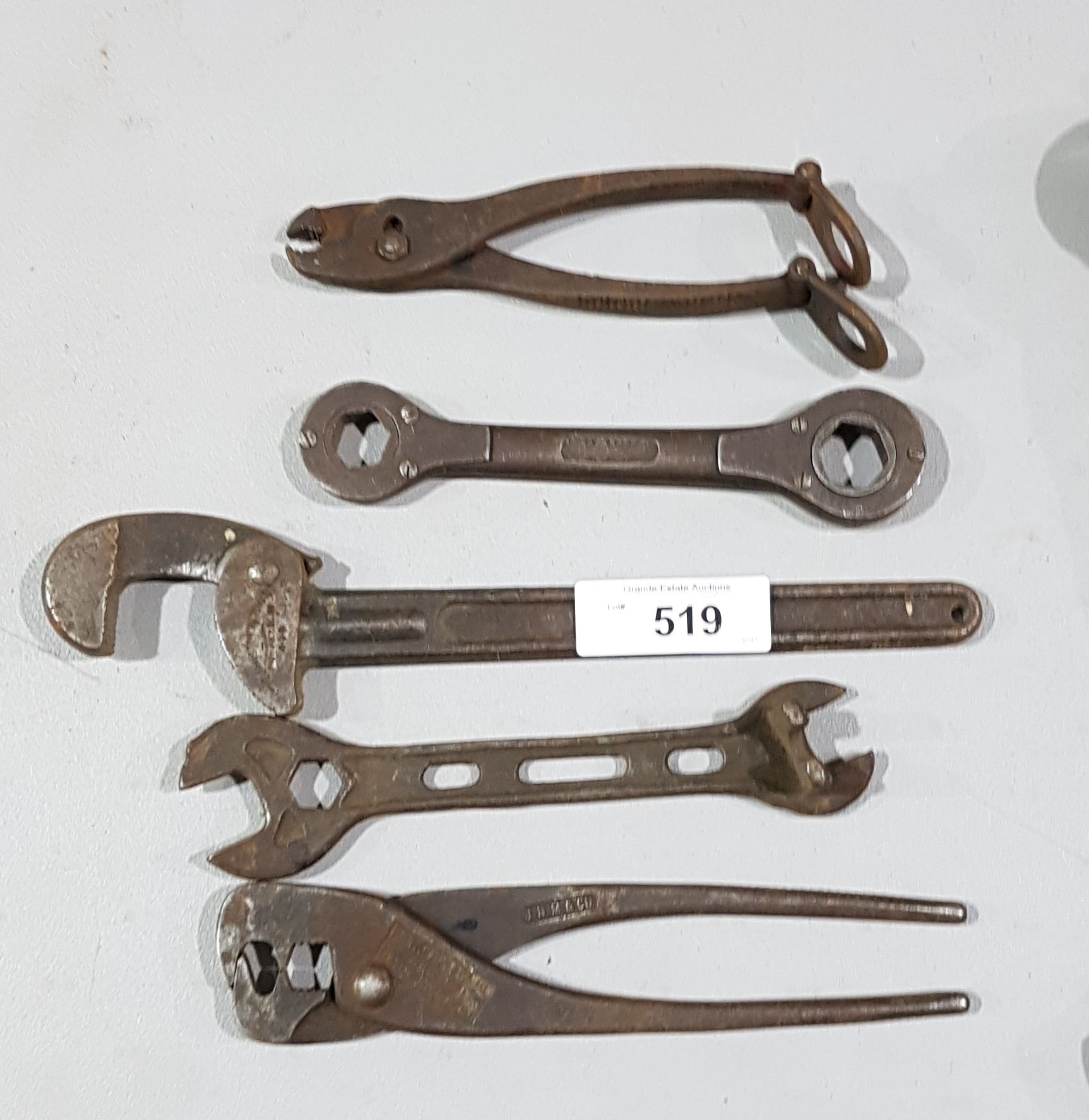 FIVE ANTIQUE WRENCHES